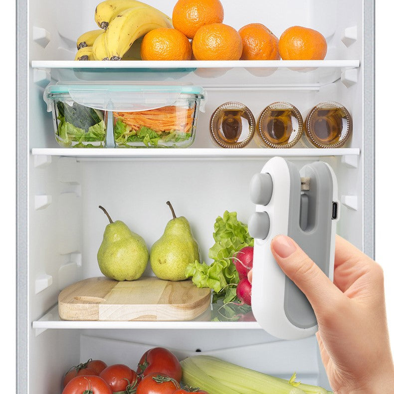 No need to buy a big expensive vacuum sealer, because our Mini Heat Sealer can both cut bags cleanly, and seal them up nice and tight for you! It's also rechargeable and has a fridge magnet at the back, adding to your convenience!